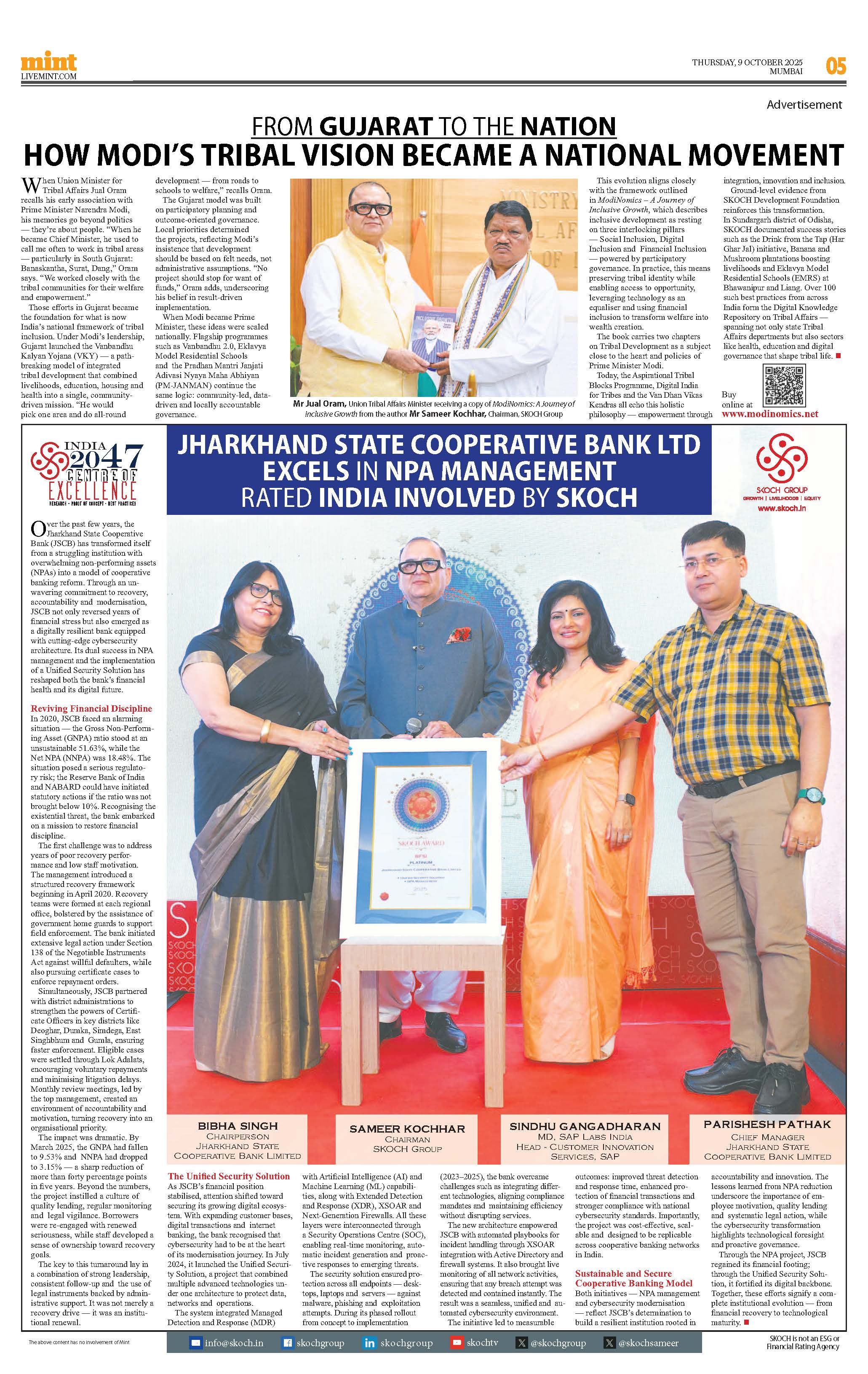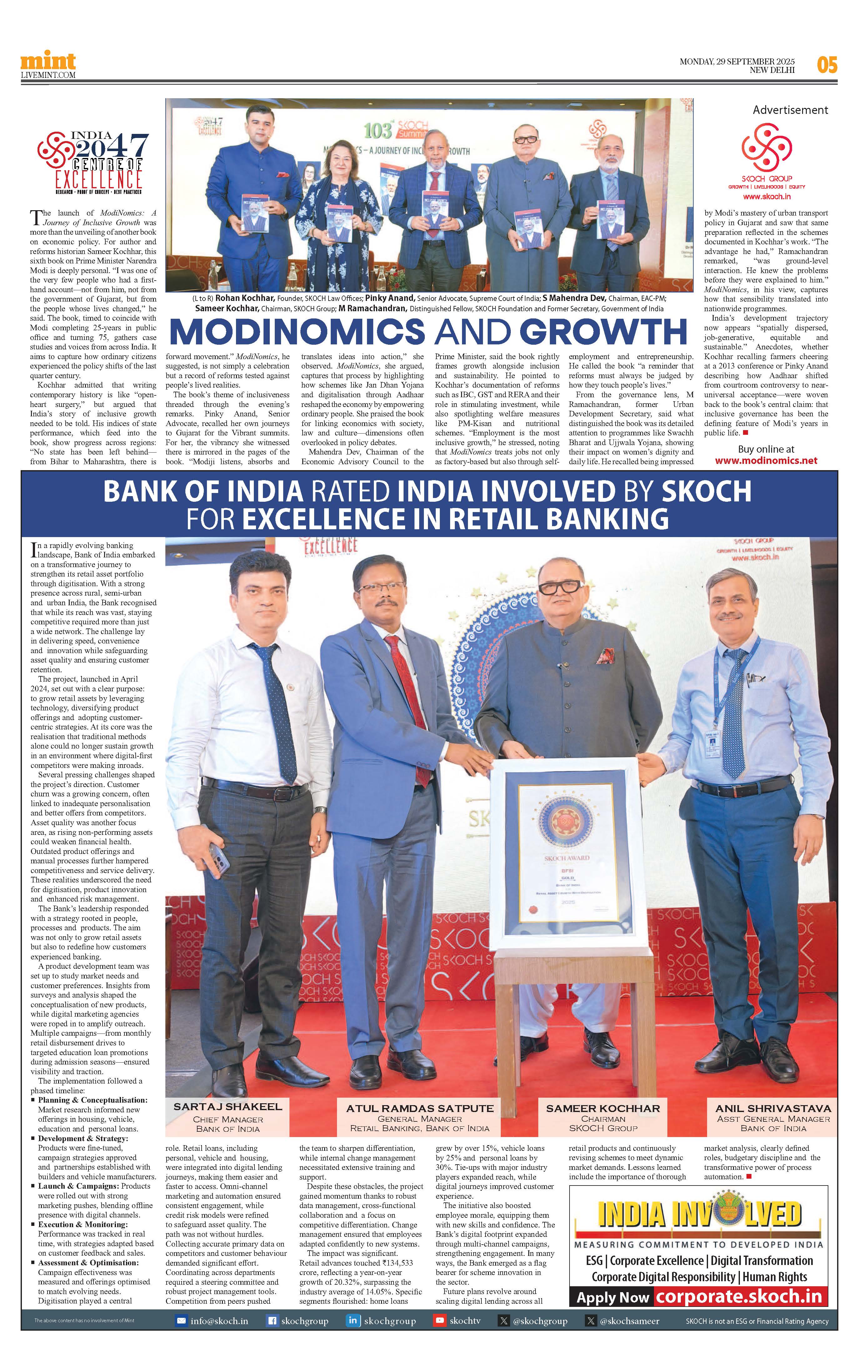 “ModiNomics - A Journey of Inclusive Growth” captures the evolution of reforms and initiatives that have de ned India’s recent economic path. Building on the SKOCH Group’s role as a catalyst for action, it o ers sharp insights into policymaking and inclusive growth. An inescapable read for anyone seeking to understand the government’s evolving economic vision”